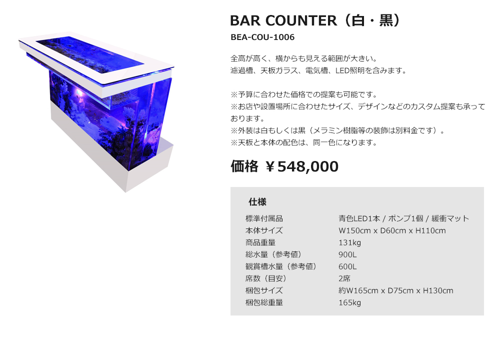 バーズアイ水槽は高級感と癒しの空間を同時に演出する史上最高の集客テーブルです。